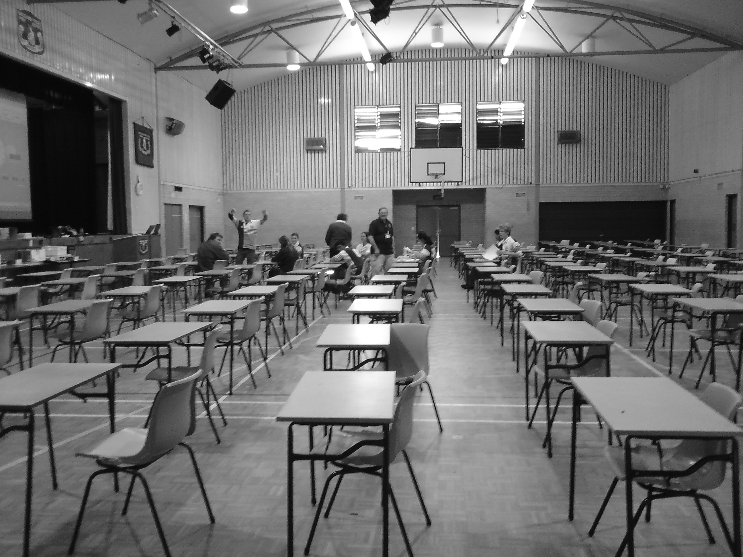 “All this week, all over the country, students have been sitting in serried ranks, crouched over desks, manually driving biros over screeds of virgin paper, to the accompaniment of the stifled yawns and squeaking shoes of invigilators.”