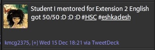 I’m so proud of every HSC student who got through the year, and was beyond excited for my ex-students who got the results they sought (I always will be). Motivation, goals, mastery, achievement, I believe in them all. But the HSC provides them too sparingly, for students and their teachers.