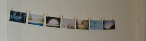 I was really happy with the prints that came out of my first rolls of Holga photography. I used some hooks, string and mini pegs to make a disply for some of my favourites: