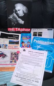 Both mailouts contained information about Literacy and Numeracy Week, which this year has as it’s theme ‘The Fundamentals are Fun!’ (hmmm, invoking fundamentalism to talk about literacy…looking forward to critiquing that), as well as a catalogue of publications available from the AATE Bookshop.