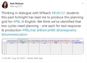 This is the third time I have lead the English Teaching Area for the MTeach unit EUN121 at my uni. I’m also the unit co-ordinator, and the second assignment in the unit allows me to get the English group planning an “inquiry task”, which in my class means “PBL”.