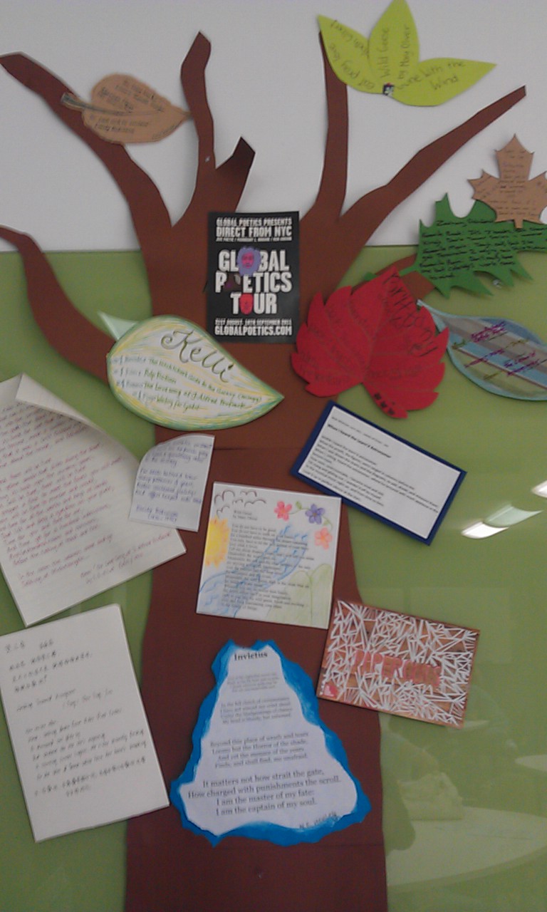2009: Far more successful displays have tended to come out of students’ own work being put up, such as this display of lines of poetry after a lesson with Year 10: